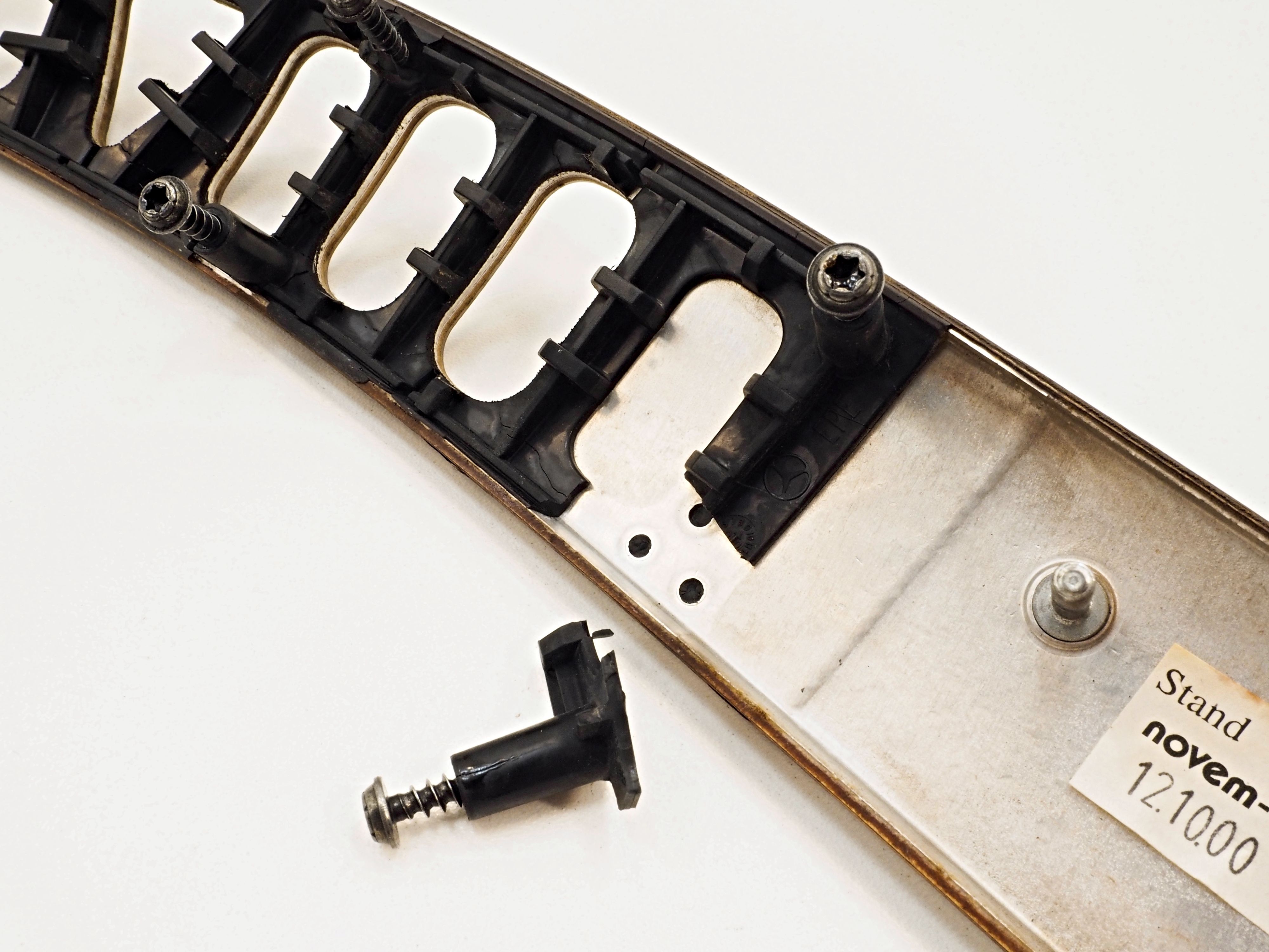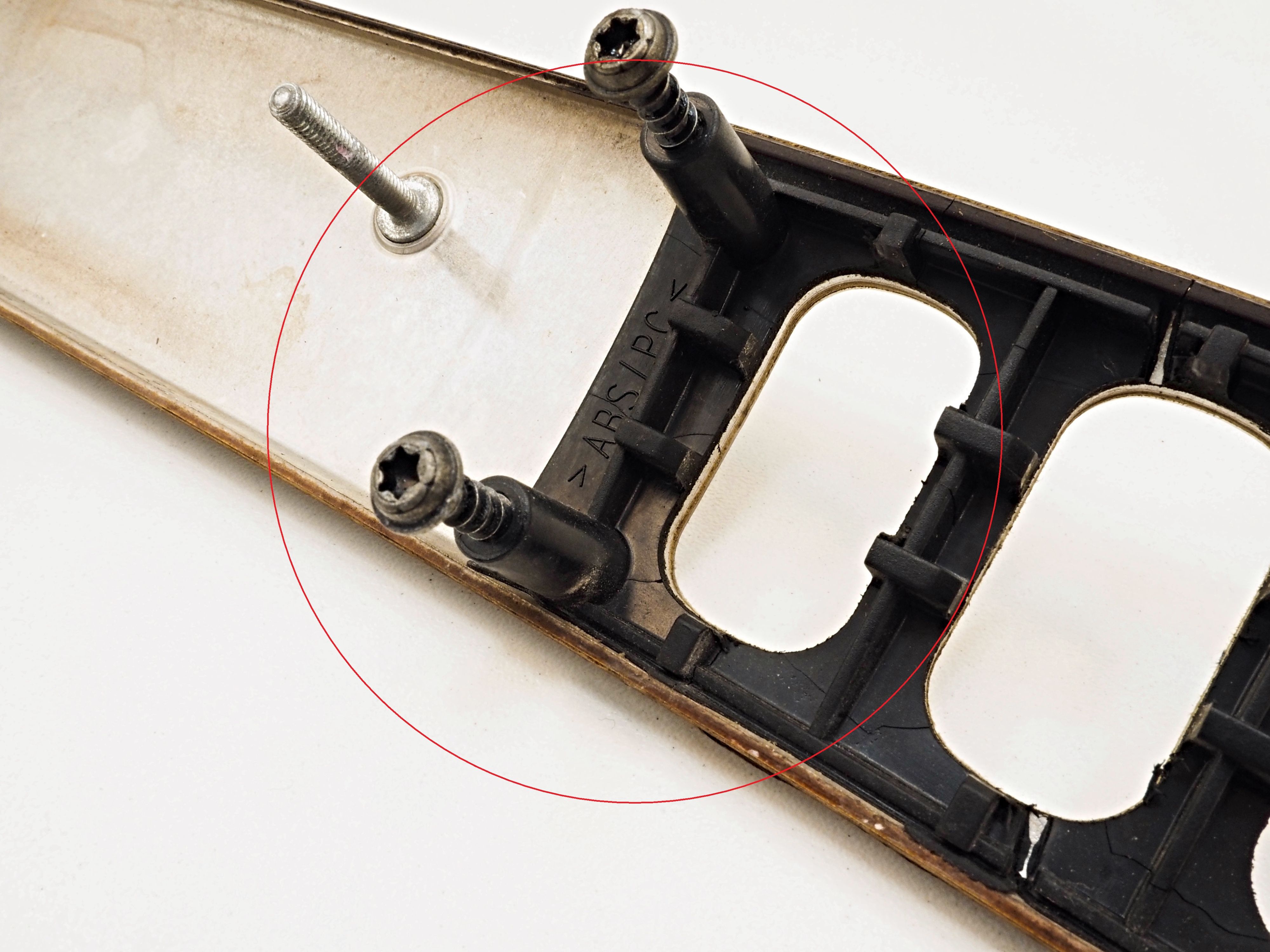 - Cosmetic defects, scratched, plastic mounts are broken, cracked varnish. Faded color.