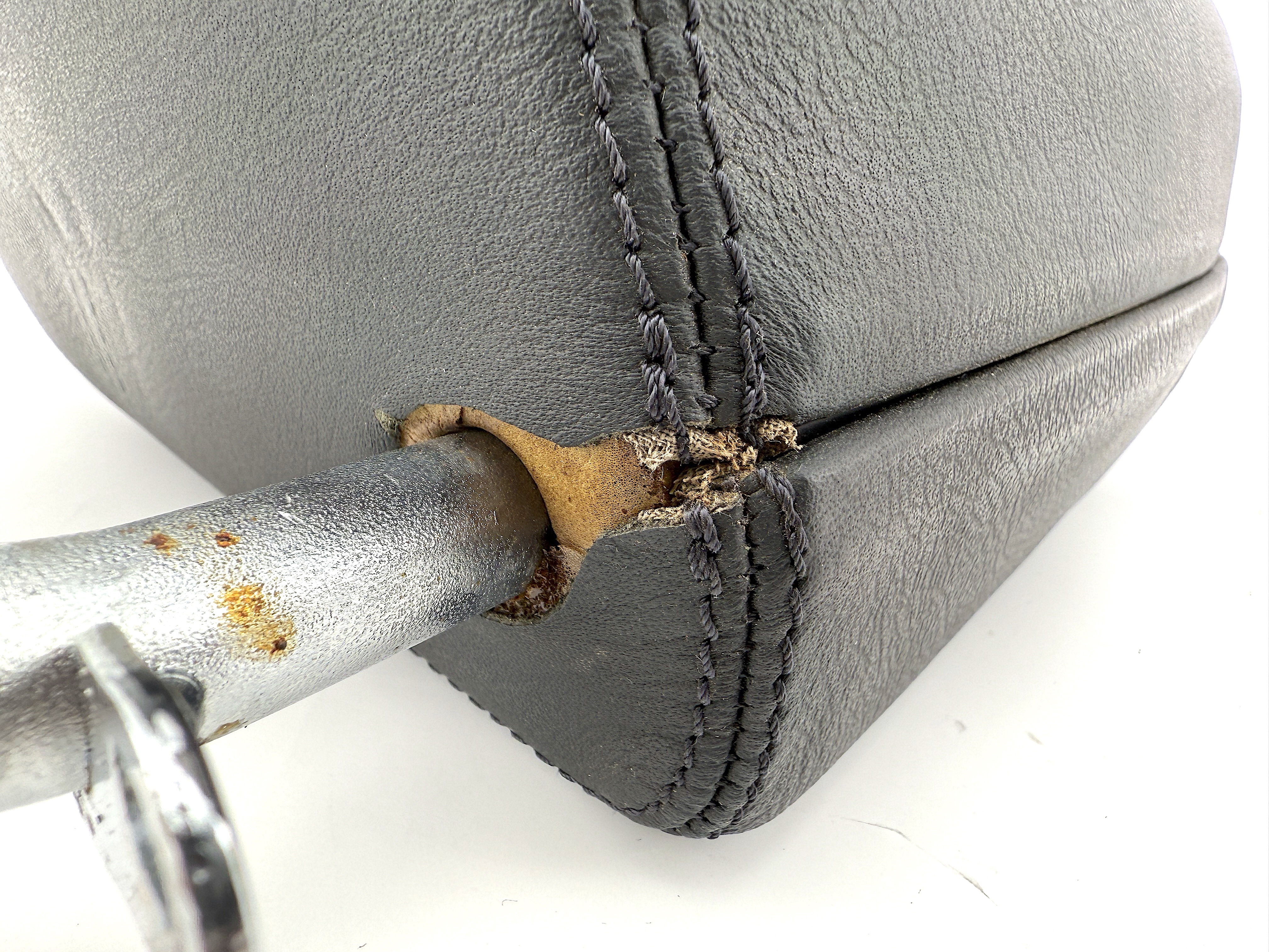 - Cosmetic defects, dirty, dents in leather, leather is worn. Small rust on mount.