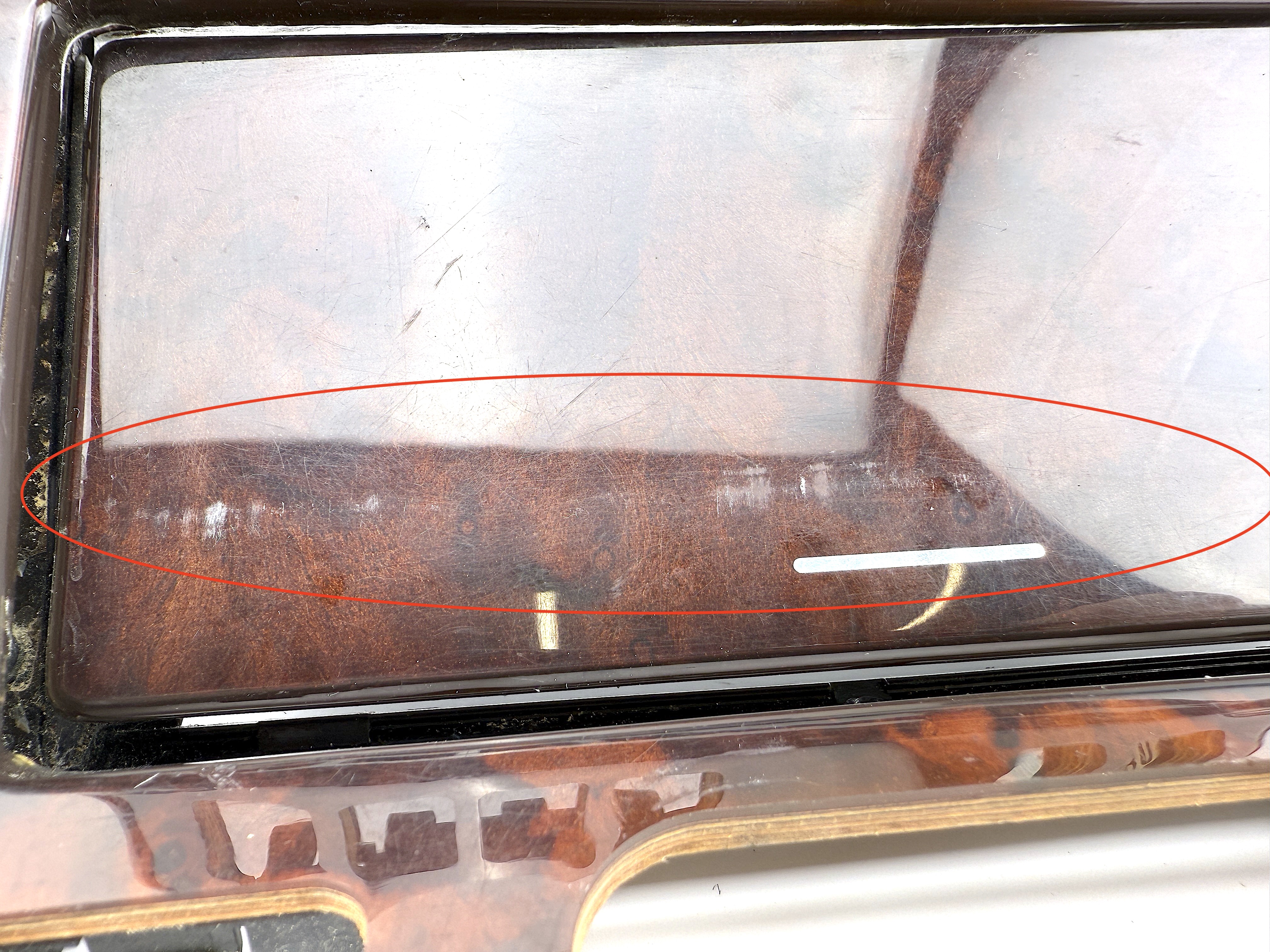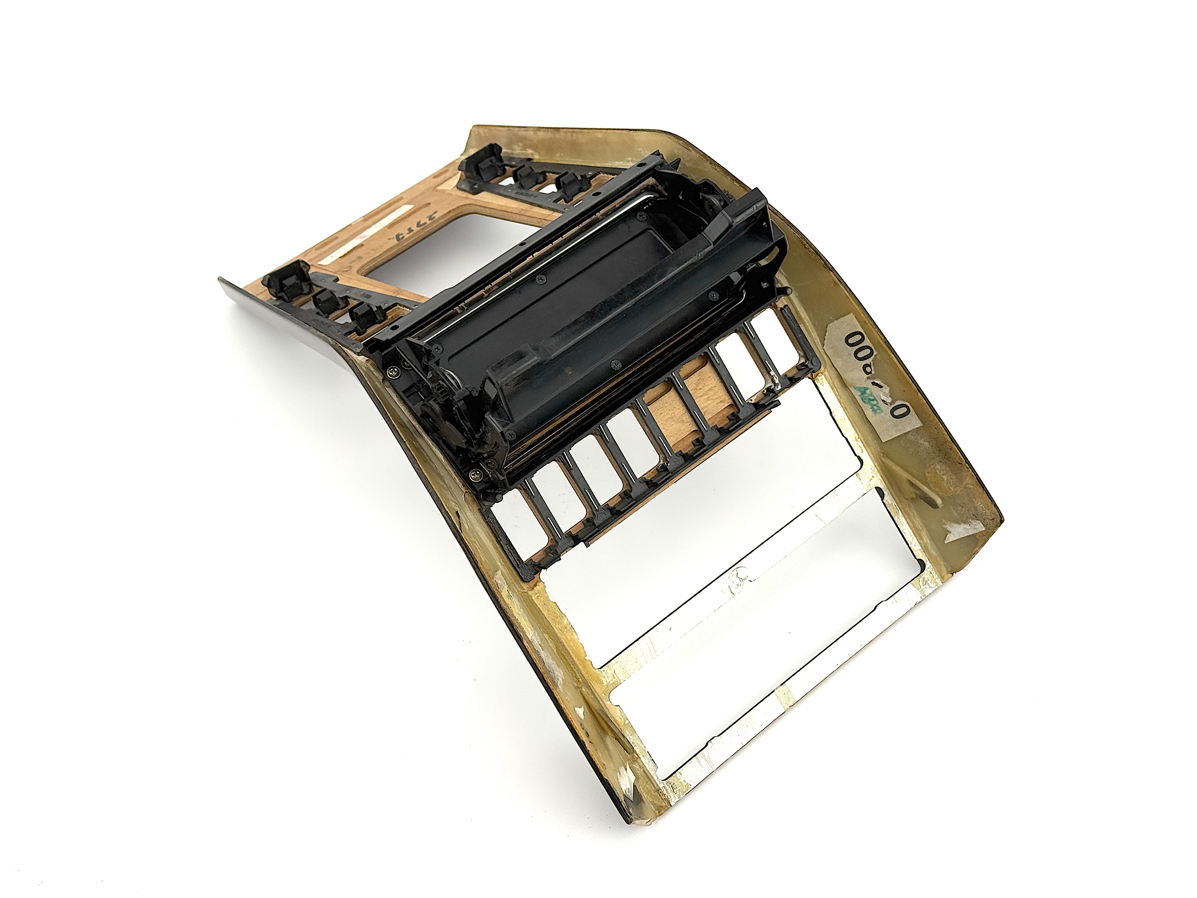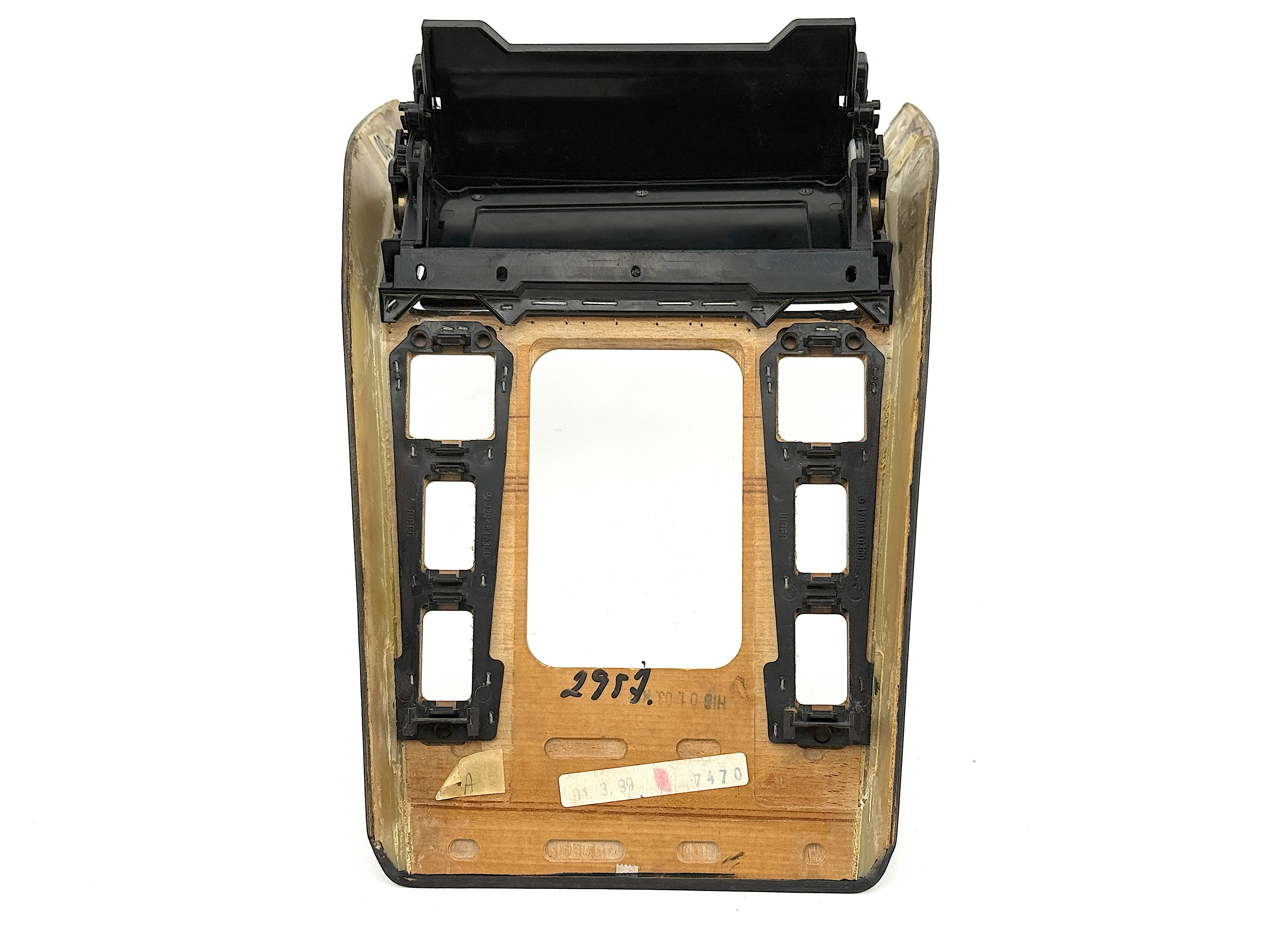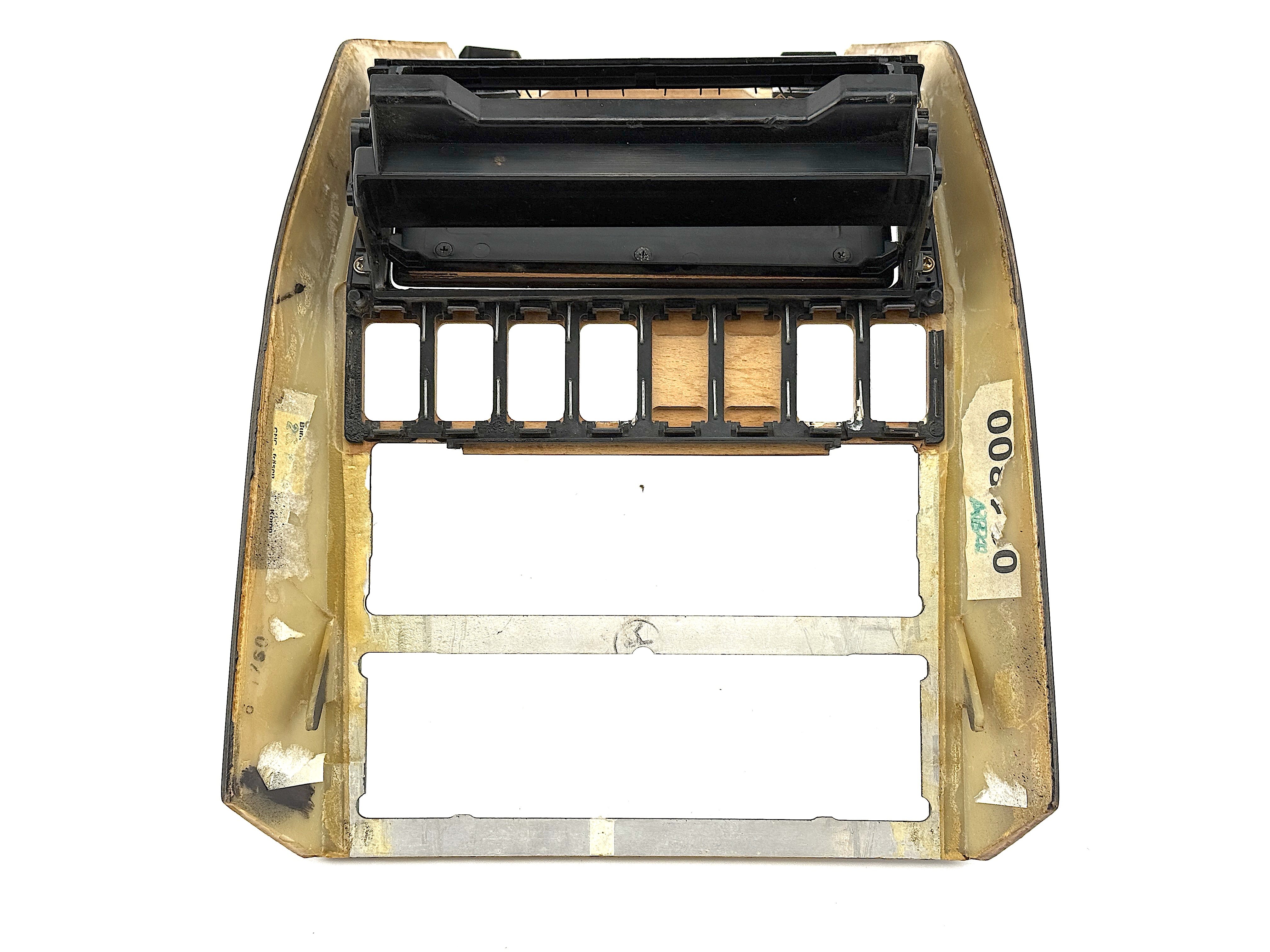 - Console trim type ES-2 7470. Cosmetic defects, dirty, cracked varnish, scratched and mated surface, broken mount in mechanism, glue on surface.
