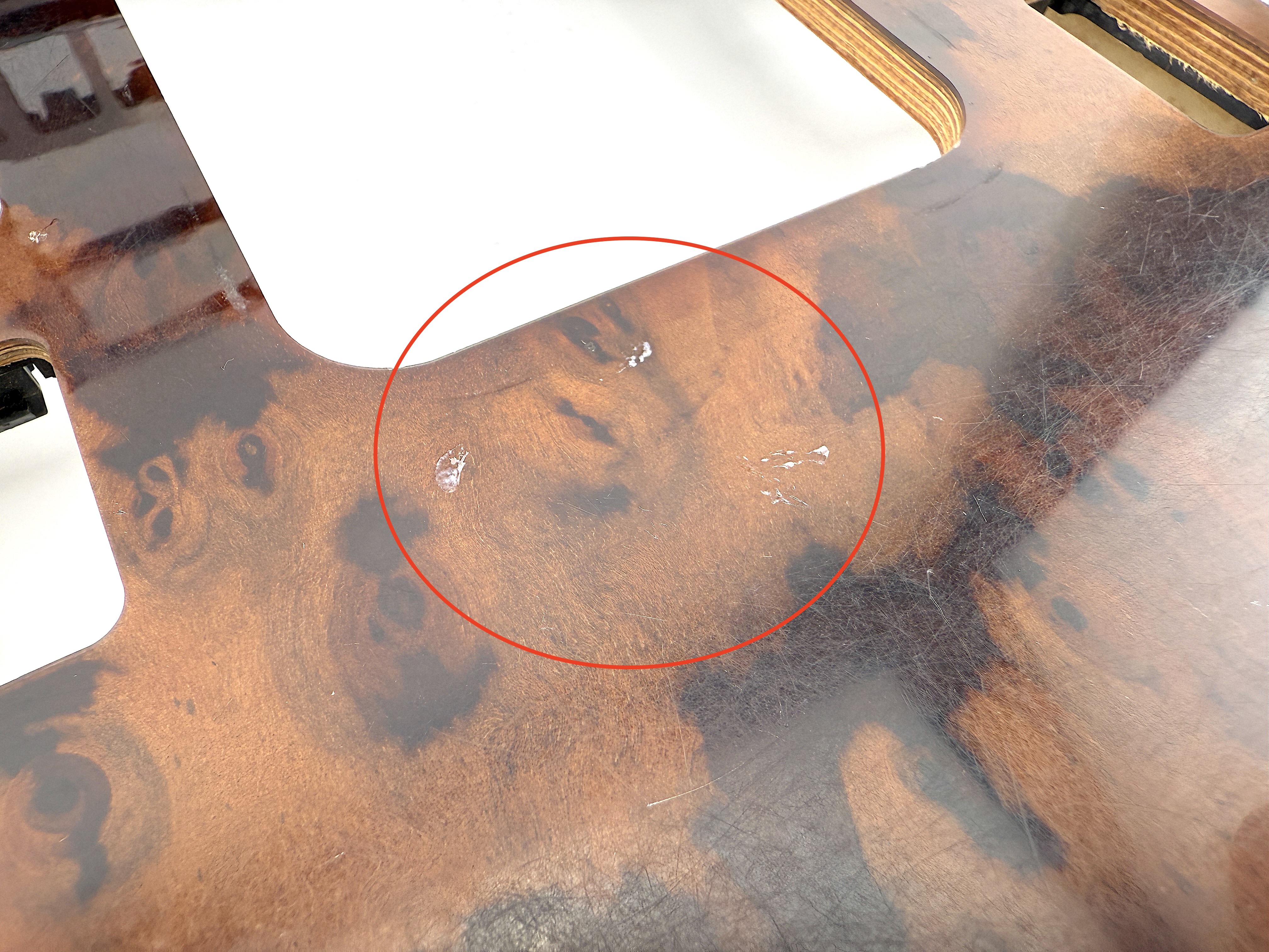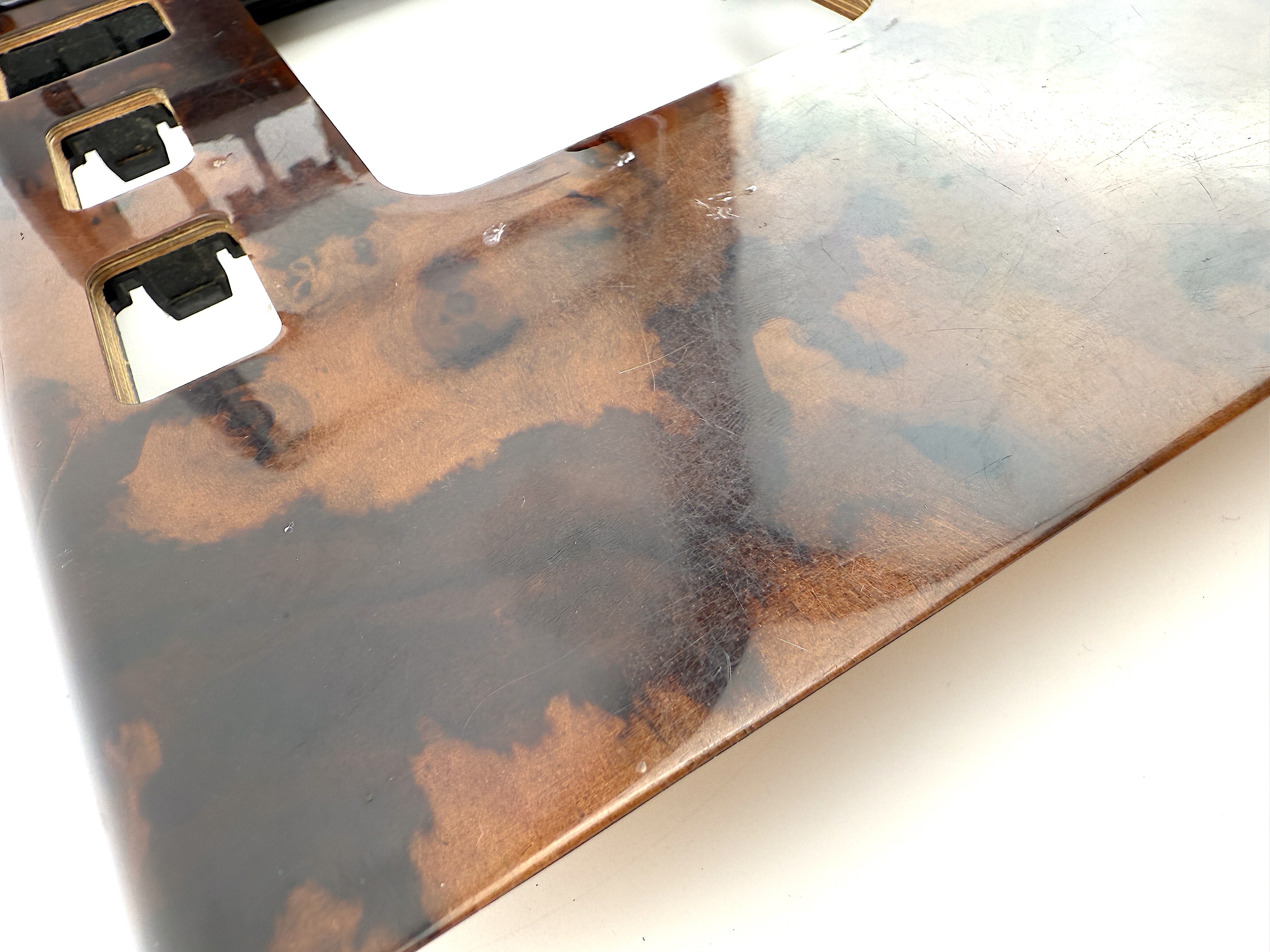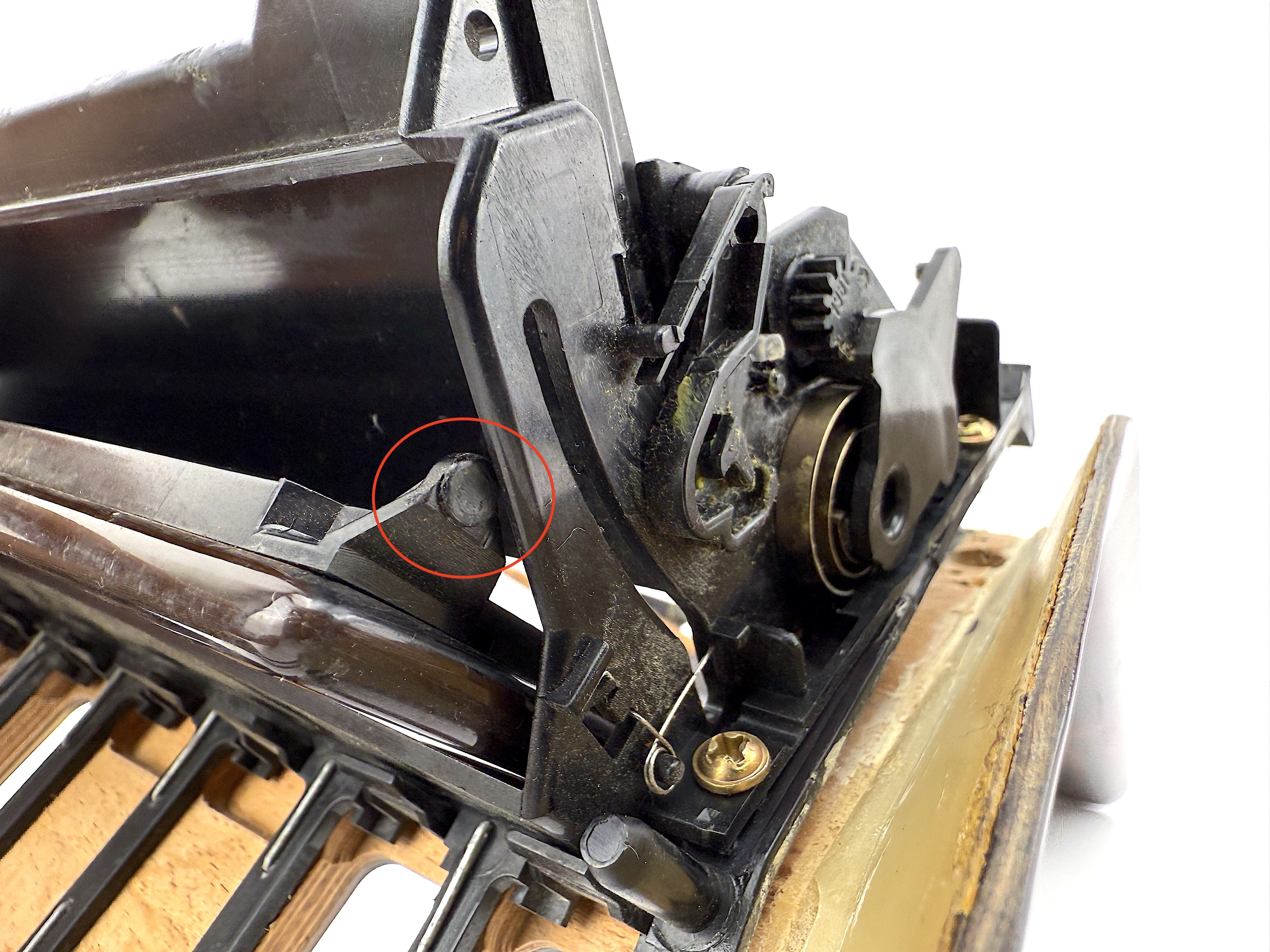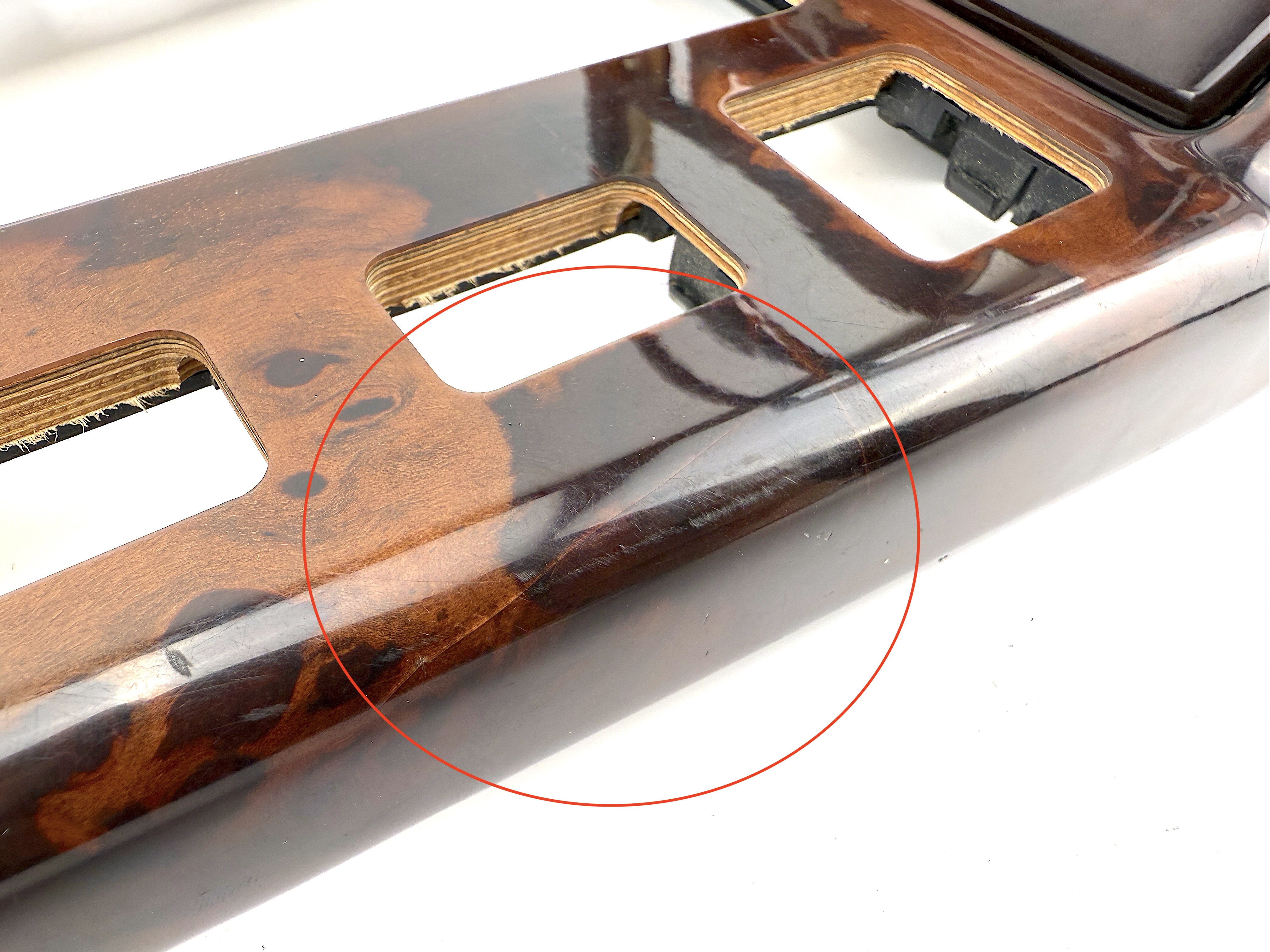 - Console trim type ES-2 7470. Cosmetic defects, dirty, cracked varnish, scratched and mated surface, broken mount in mechanism, glue on surface.