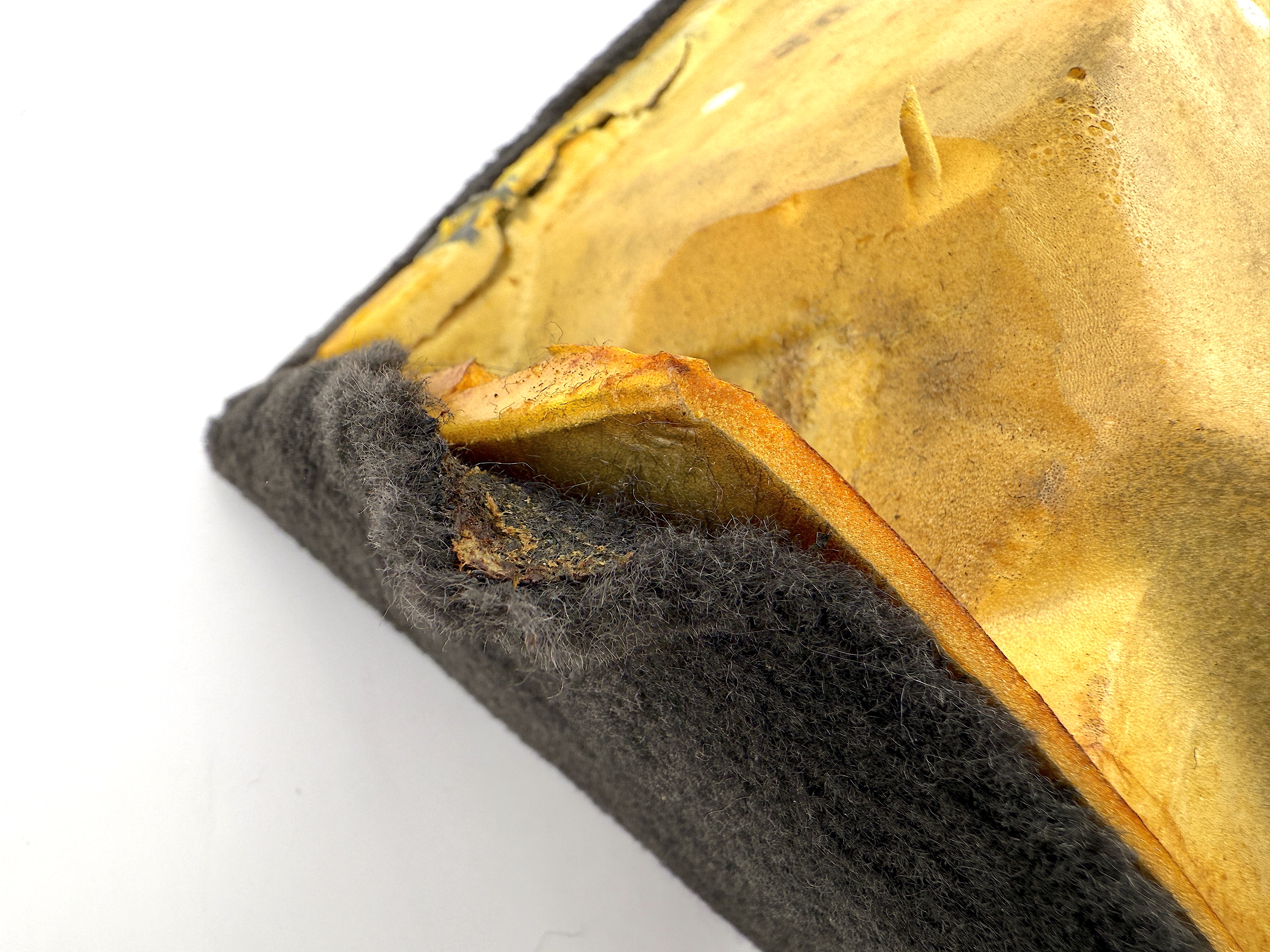 - Cosmetic defects, dirty, fabric in corner is slightly comes off, cracks in insulation.