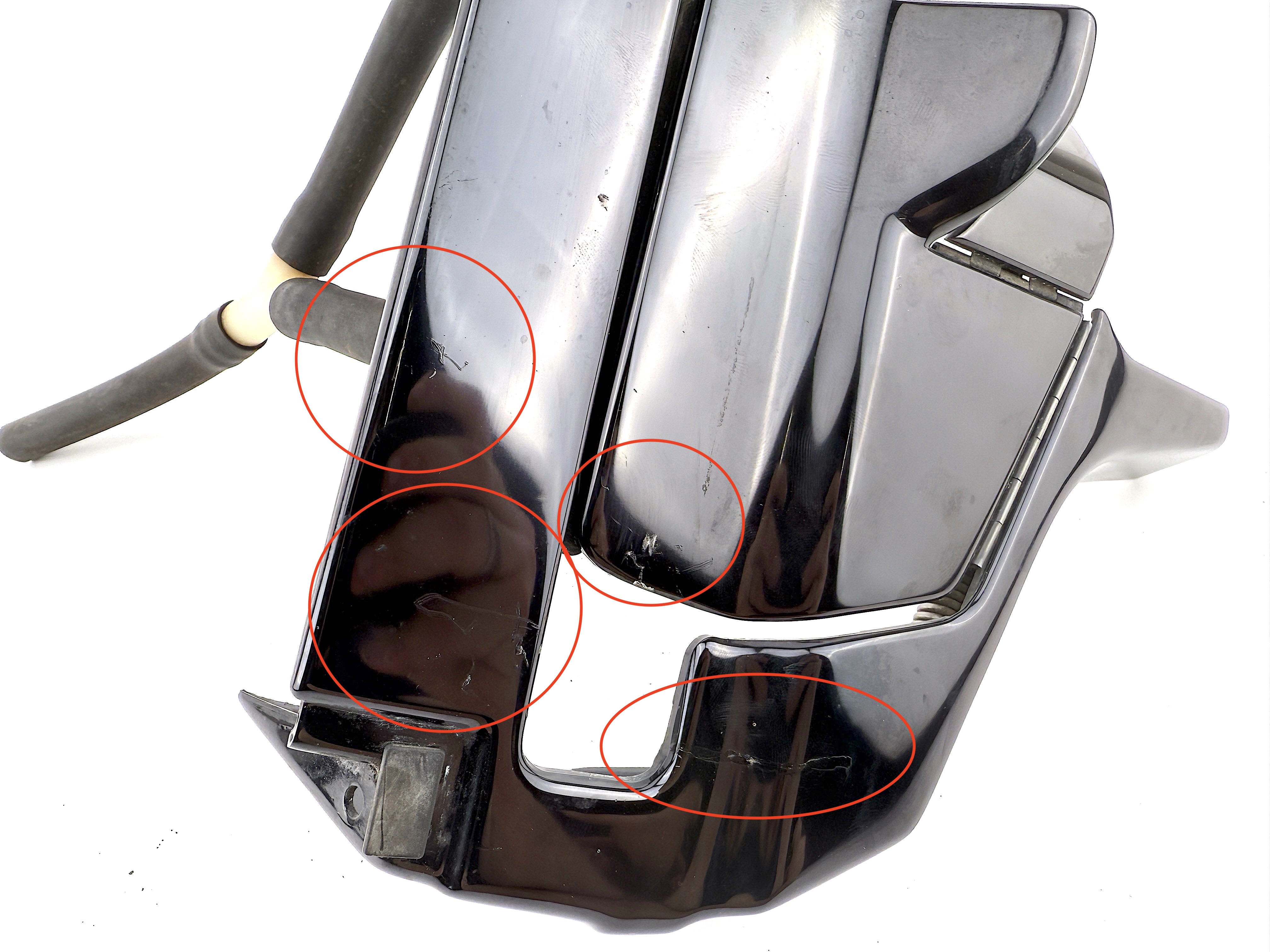 - Cosmetic defects, dirty, scratched. The plastic has came off.