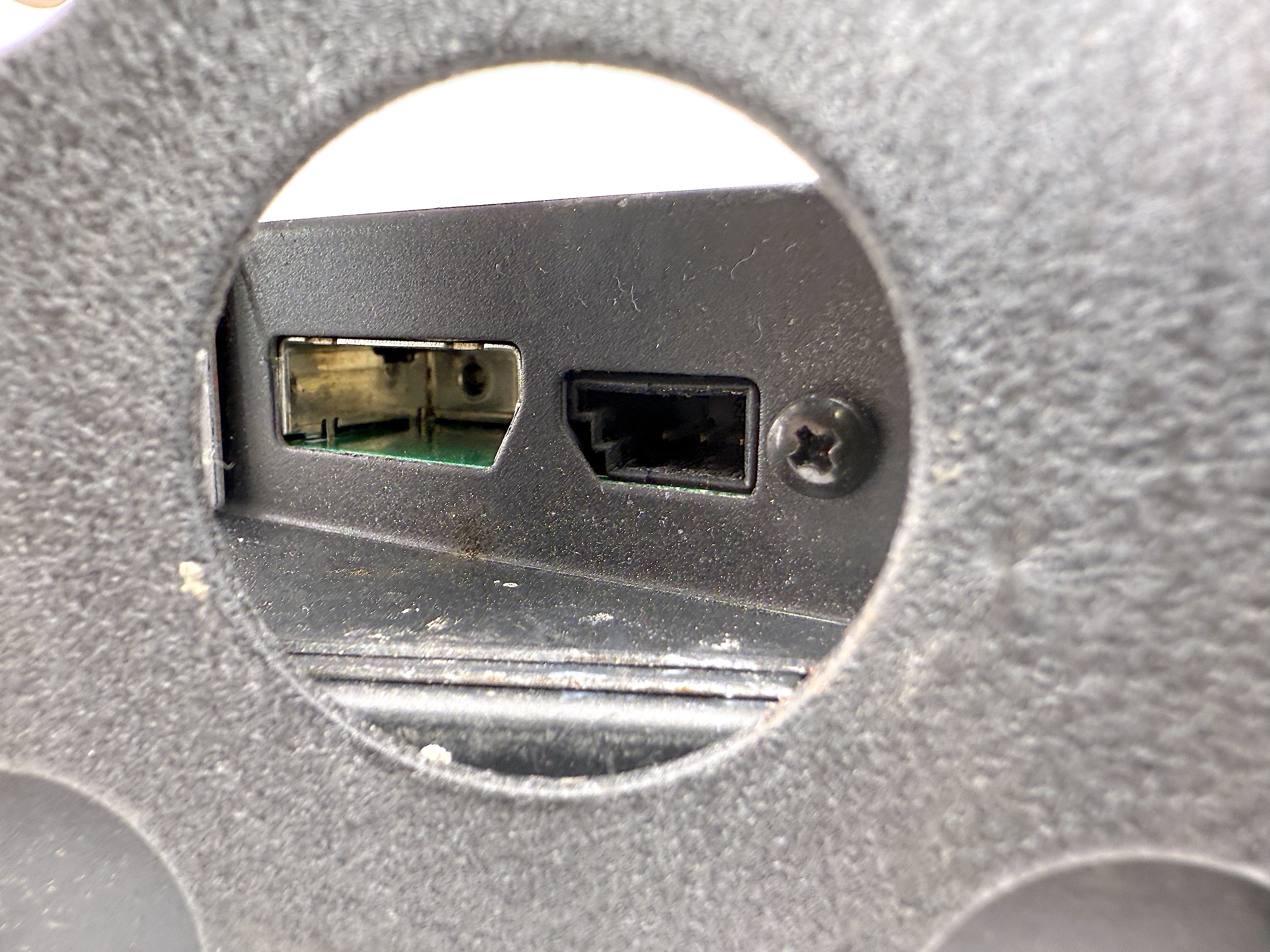 - Working condition. Missing disk storage. Multiple scratches on the plastic and metal body. Rusted holding bracket.