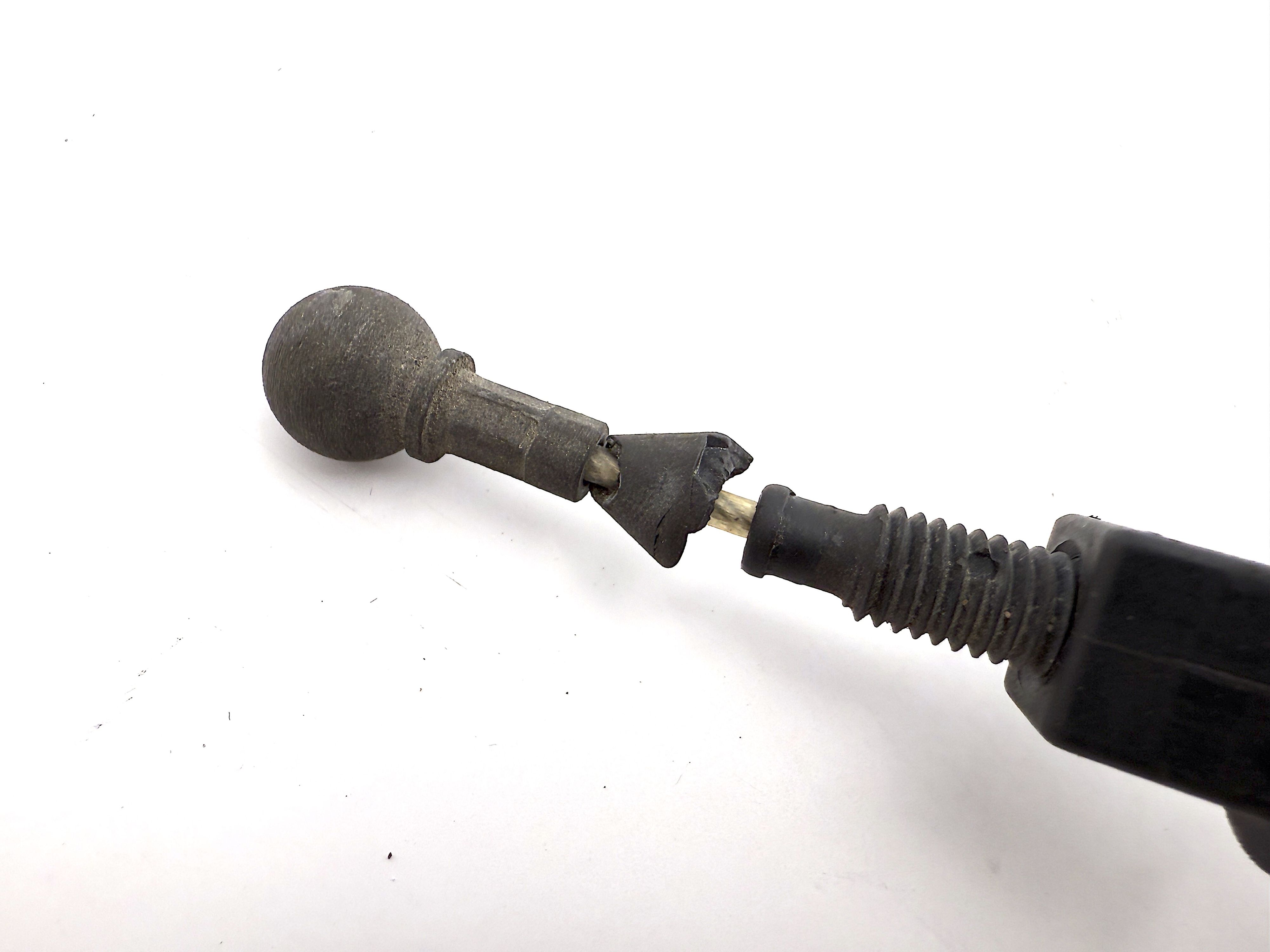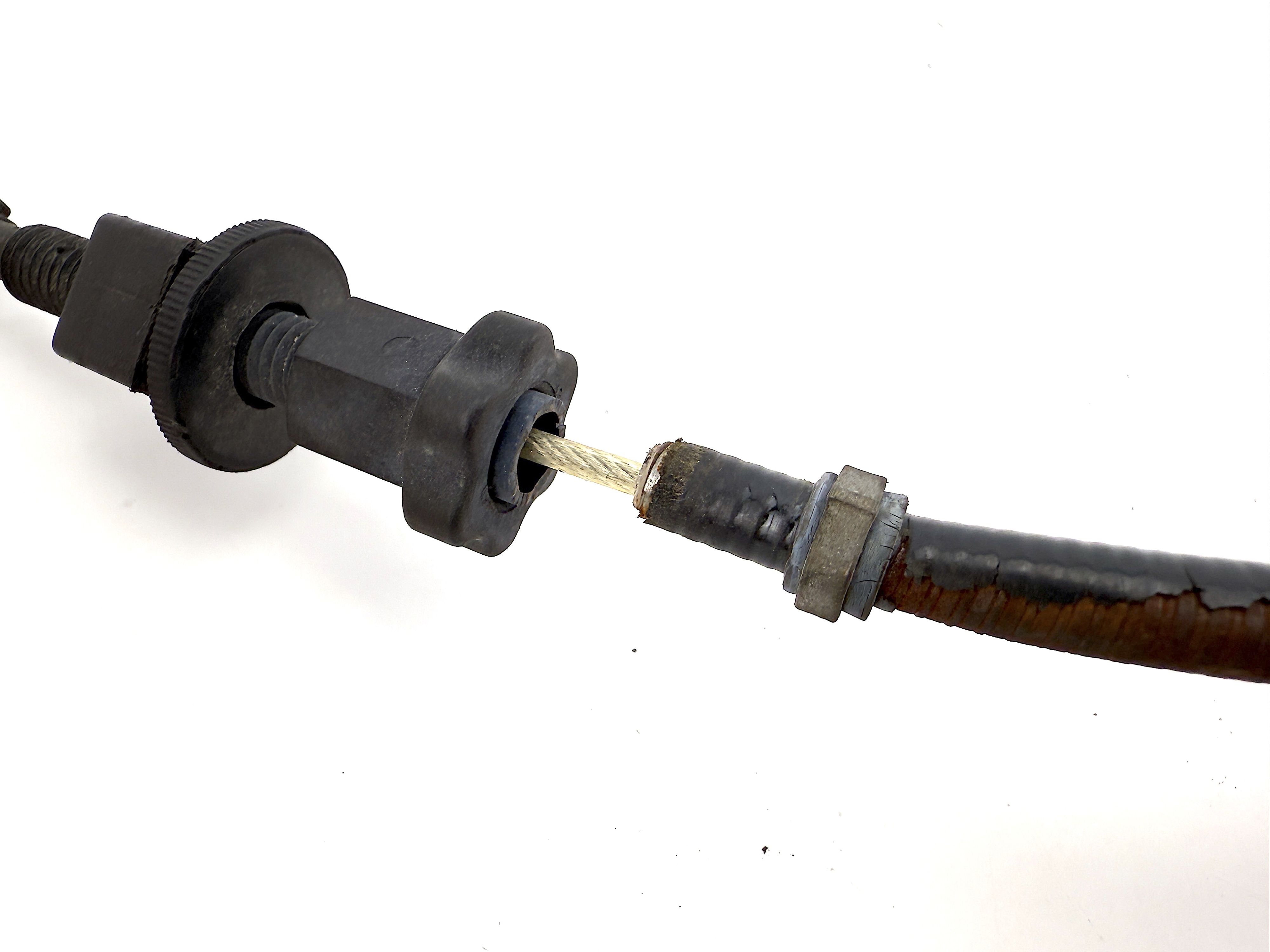 - Damaged rubber cover and rust on cable. Cracked rubber seal. Cracked and broken plastic.