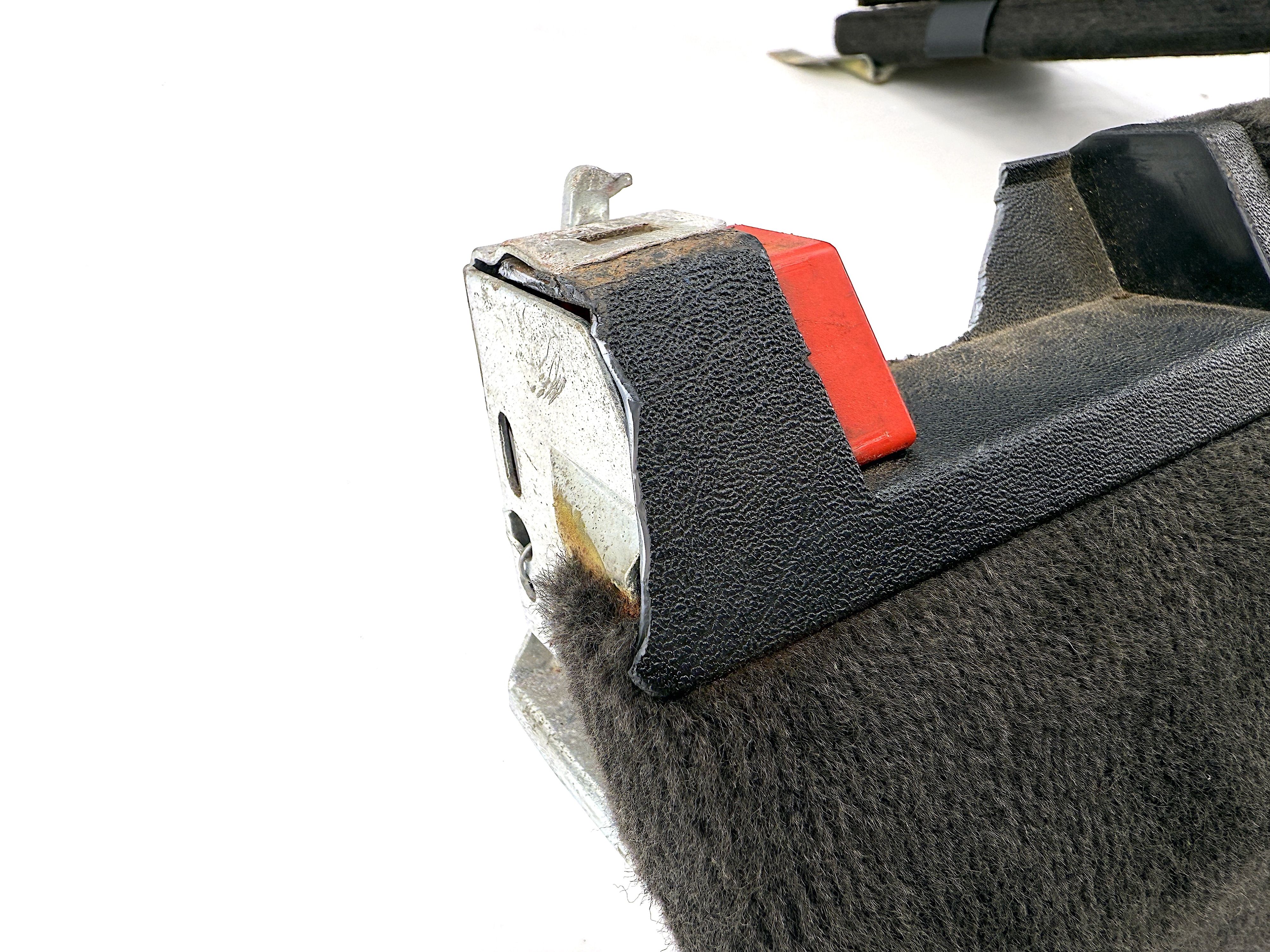 - Cosmetic defect, dirty. Not faded color. Missing one locking actuator, mechanism is damaged, rusted and doesn't work