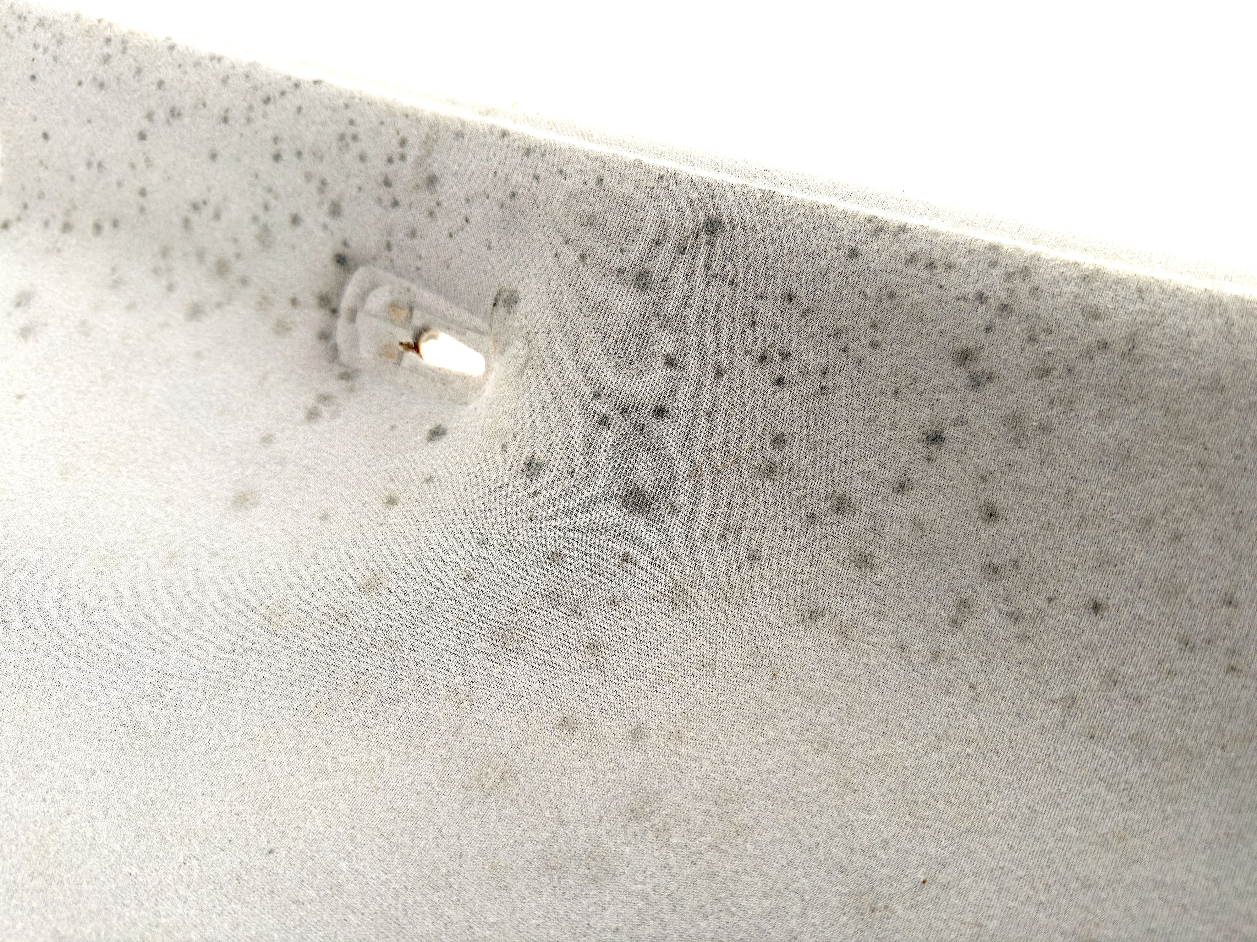 - Cosmetic defects, dirty, mold and dents. The fabric is starting to come off. There are cracks in plastic mount and some are missing.