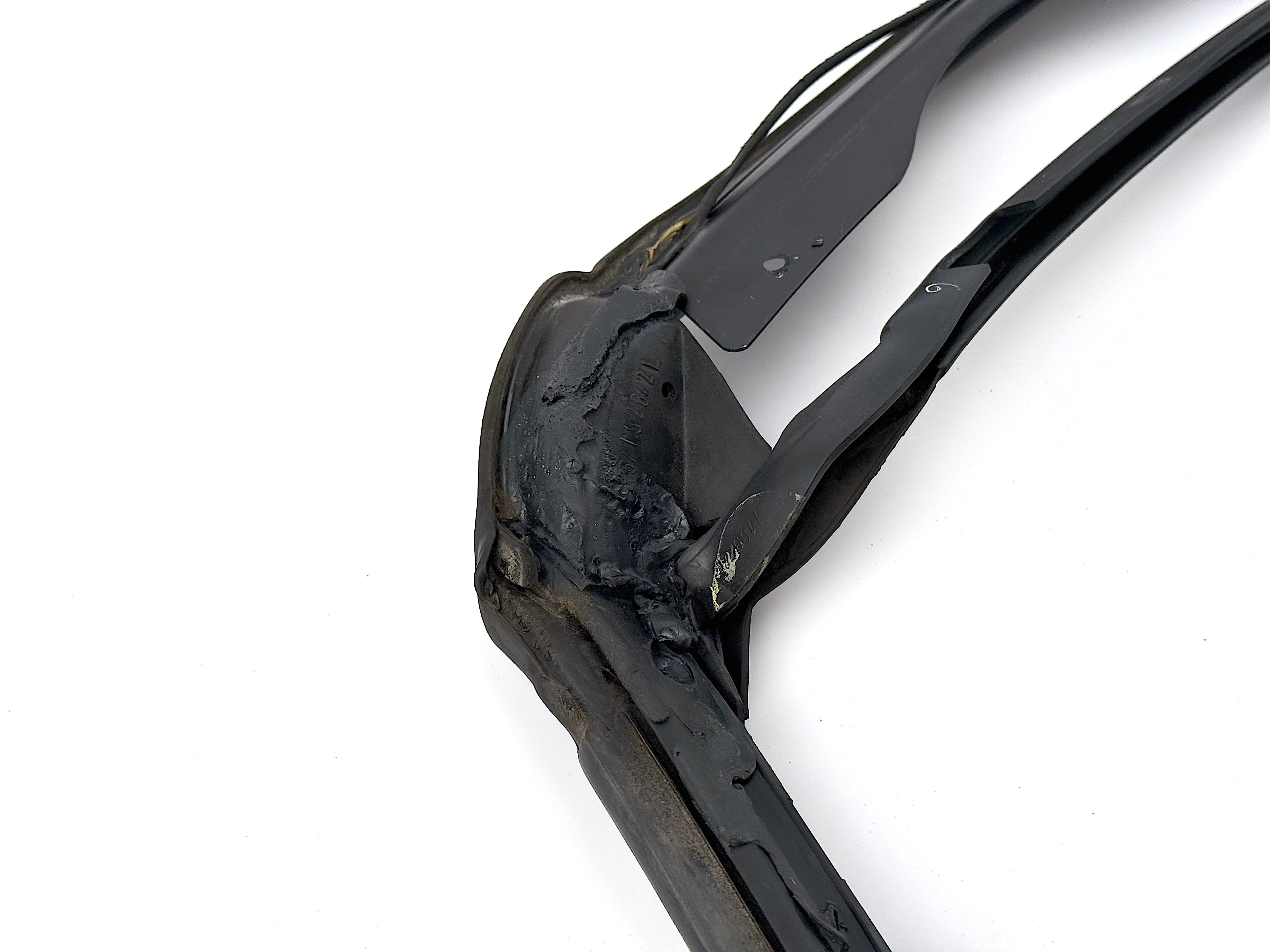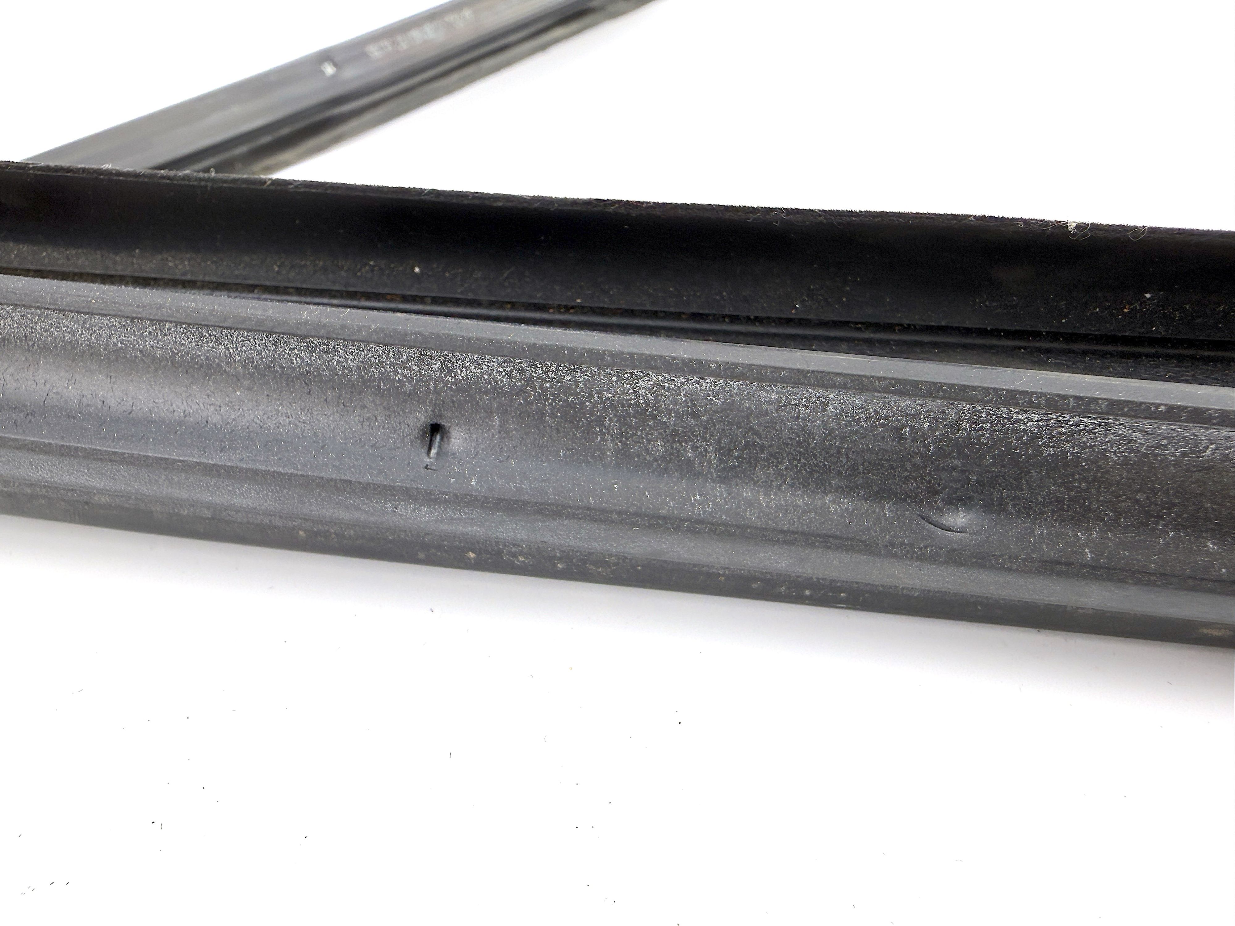 - Rubber is deformed, has dents and soft part is peeling off. One end of the inner rubber has torn off.