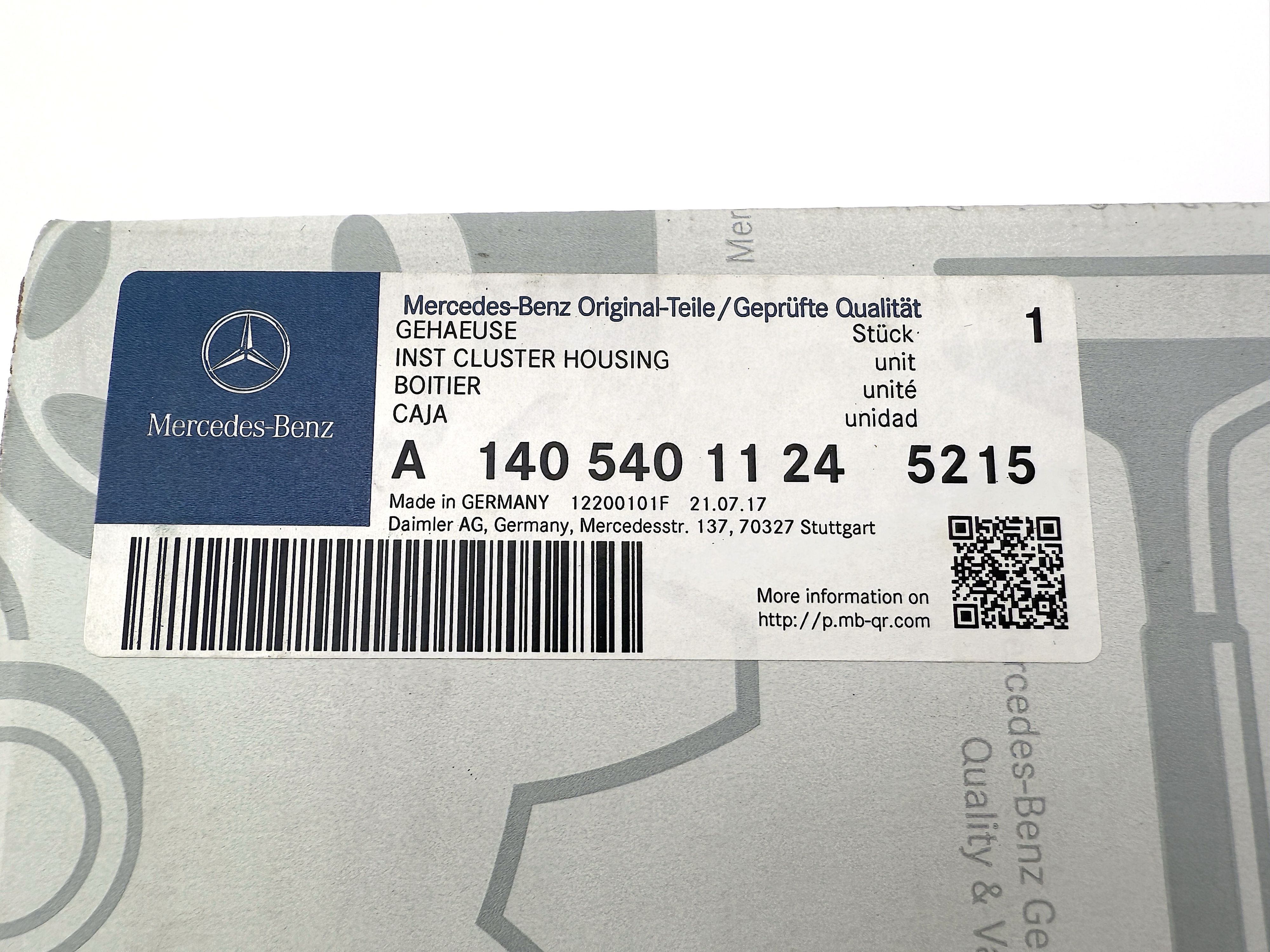 An original Mercedes product, in the original packaging, a new and never used Mercedes spare part.