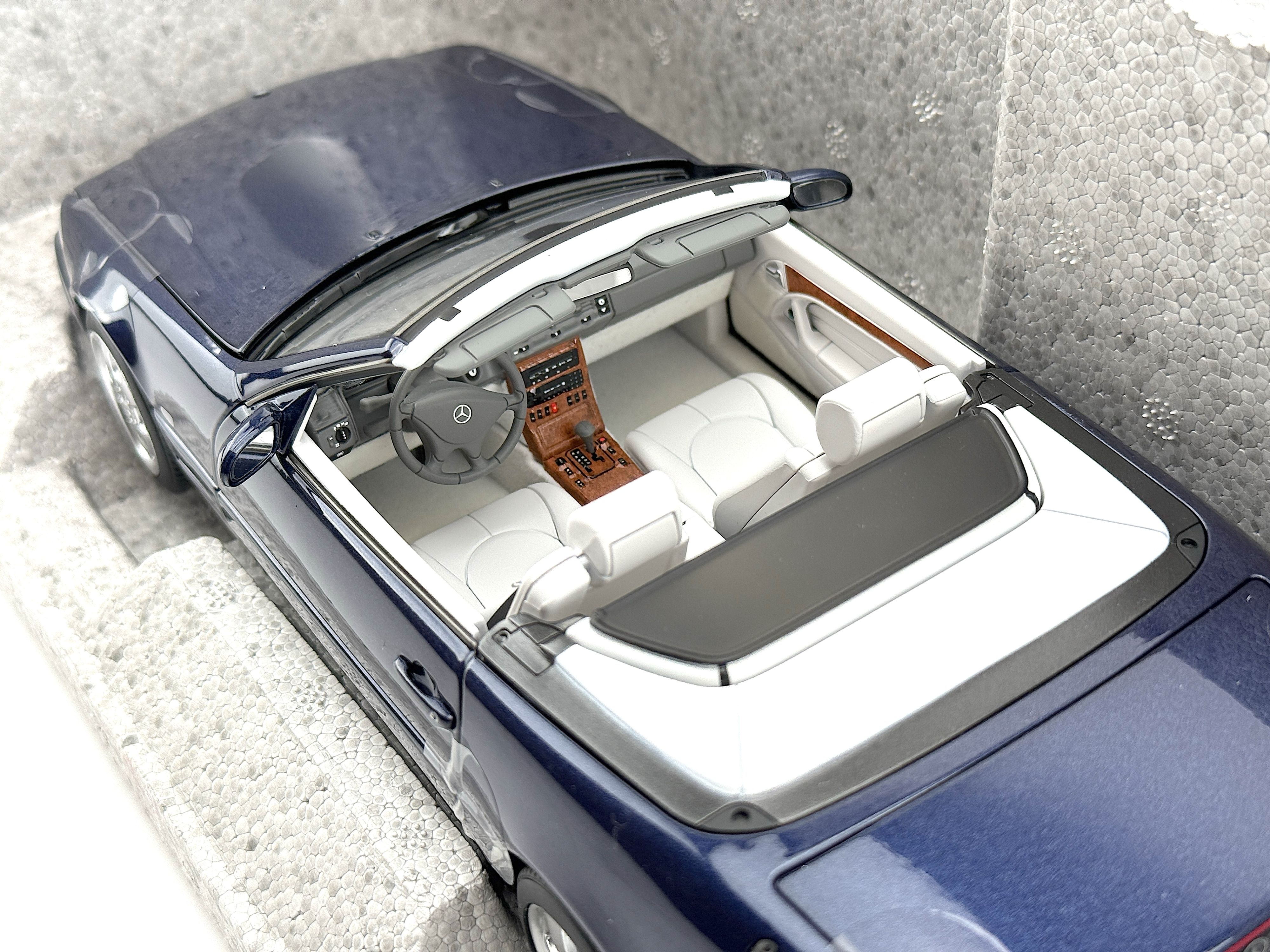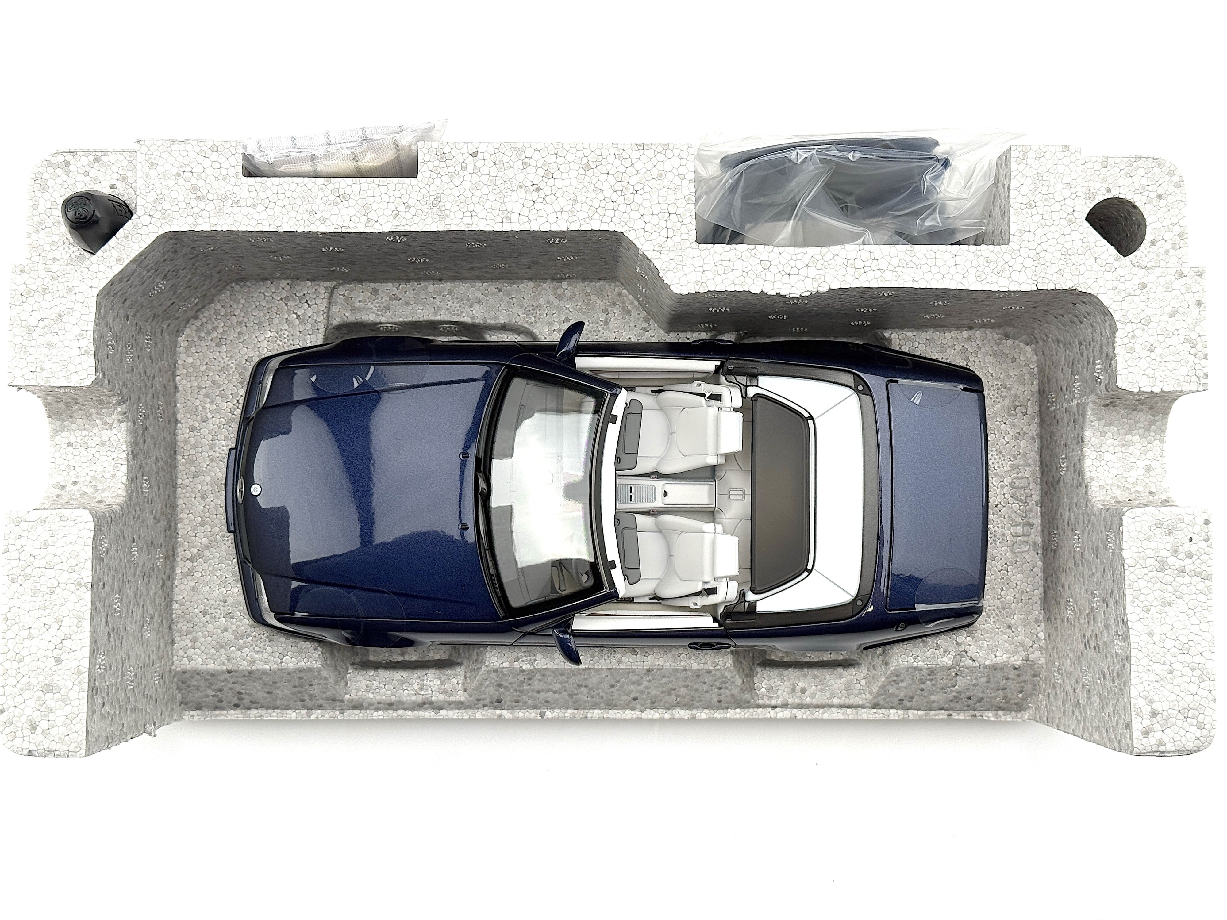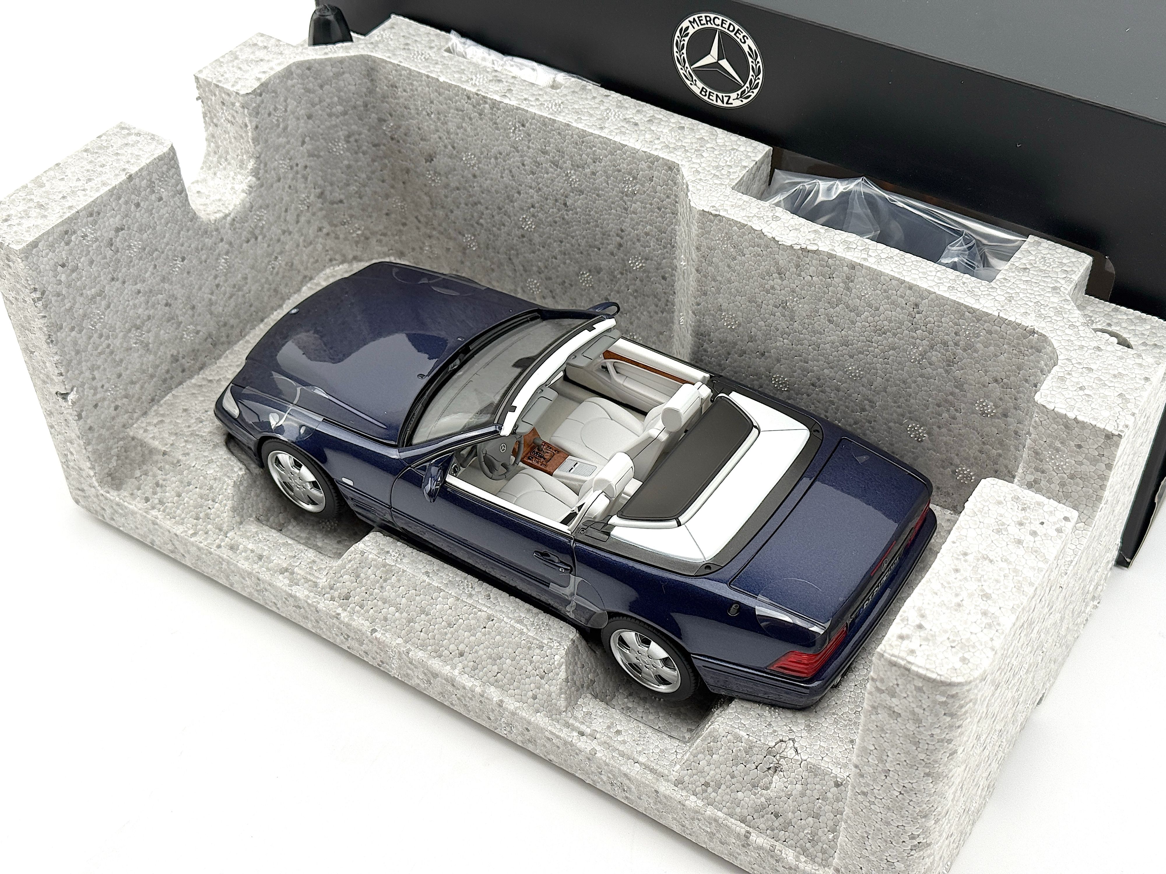 - Original brand new, never used, in original Mercedes package. Azuritblau/azure blue color. Model car size 1:18. Package include 1 Car, 1 hard top, 1 soft top, 1 fabric cover, 1 screwdriver.