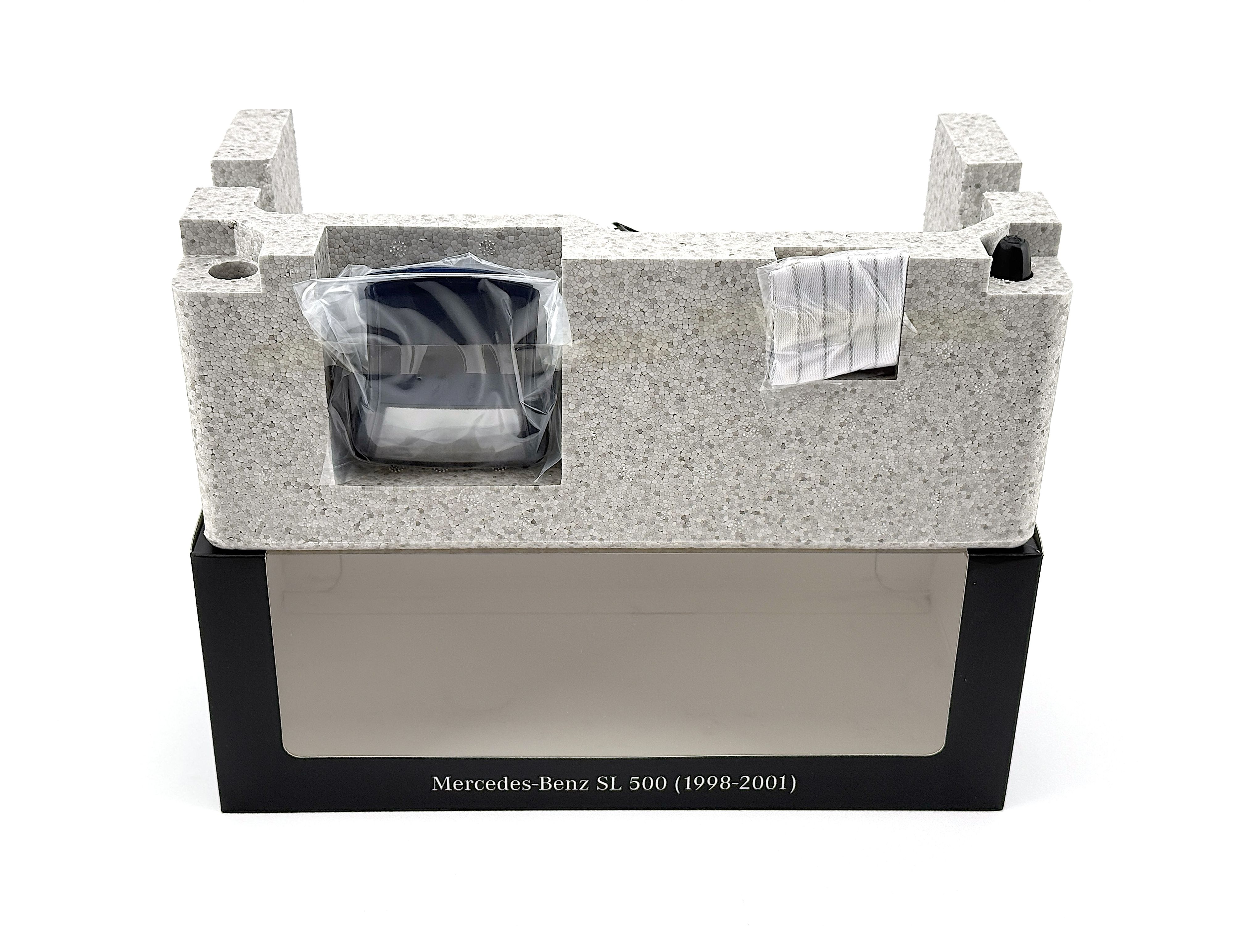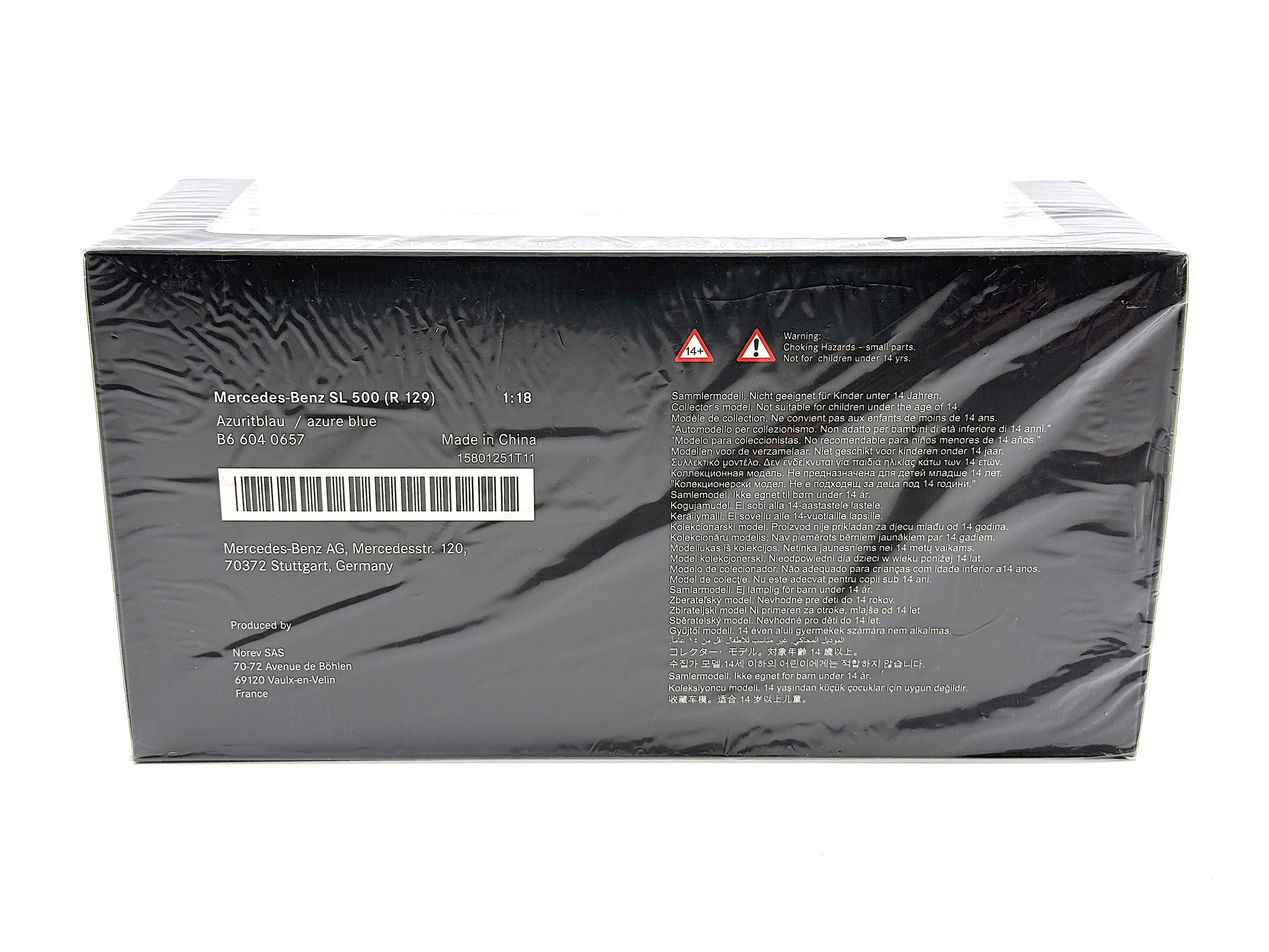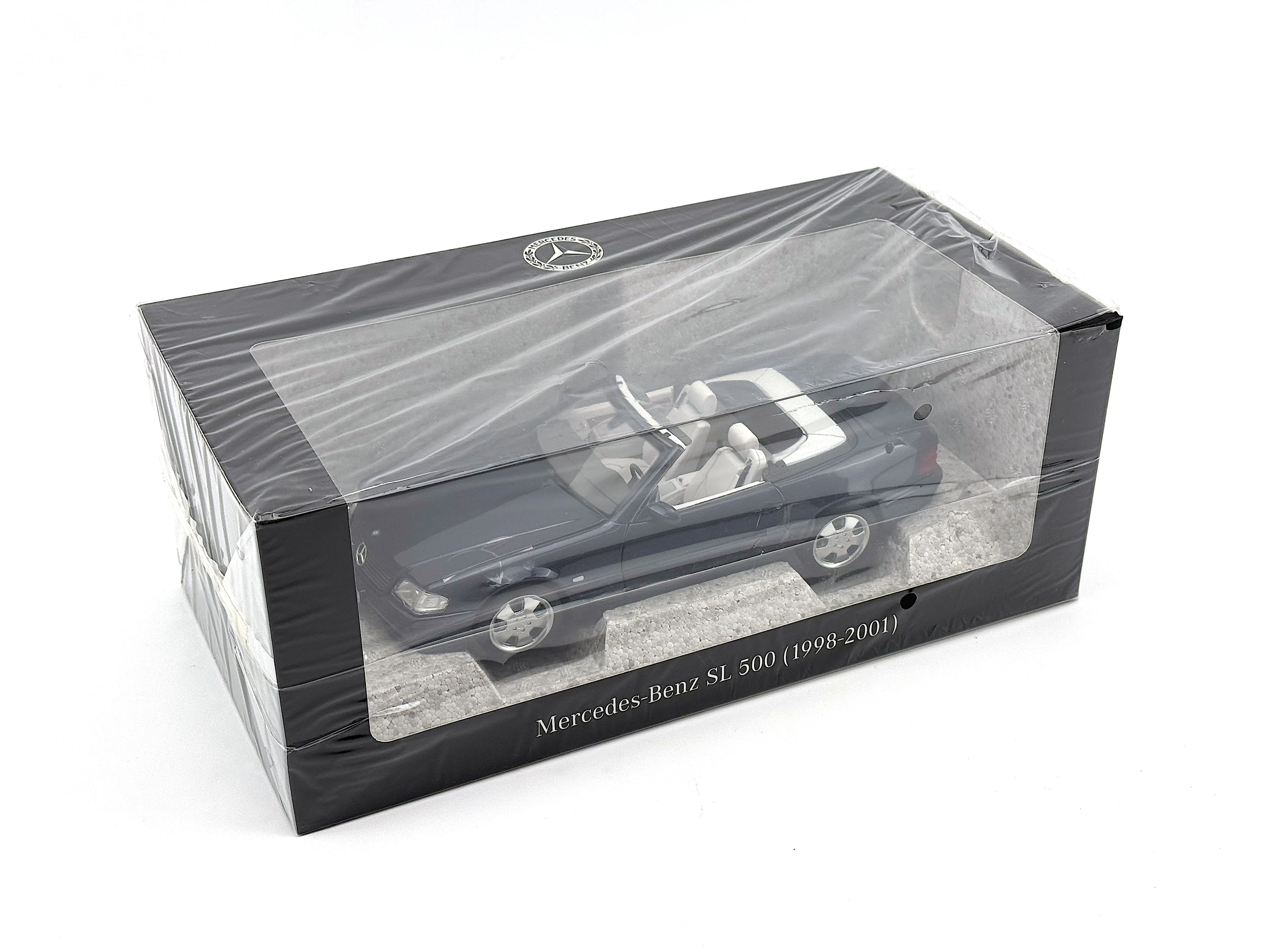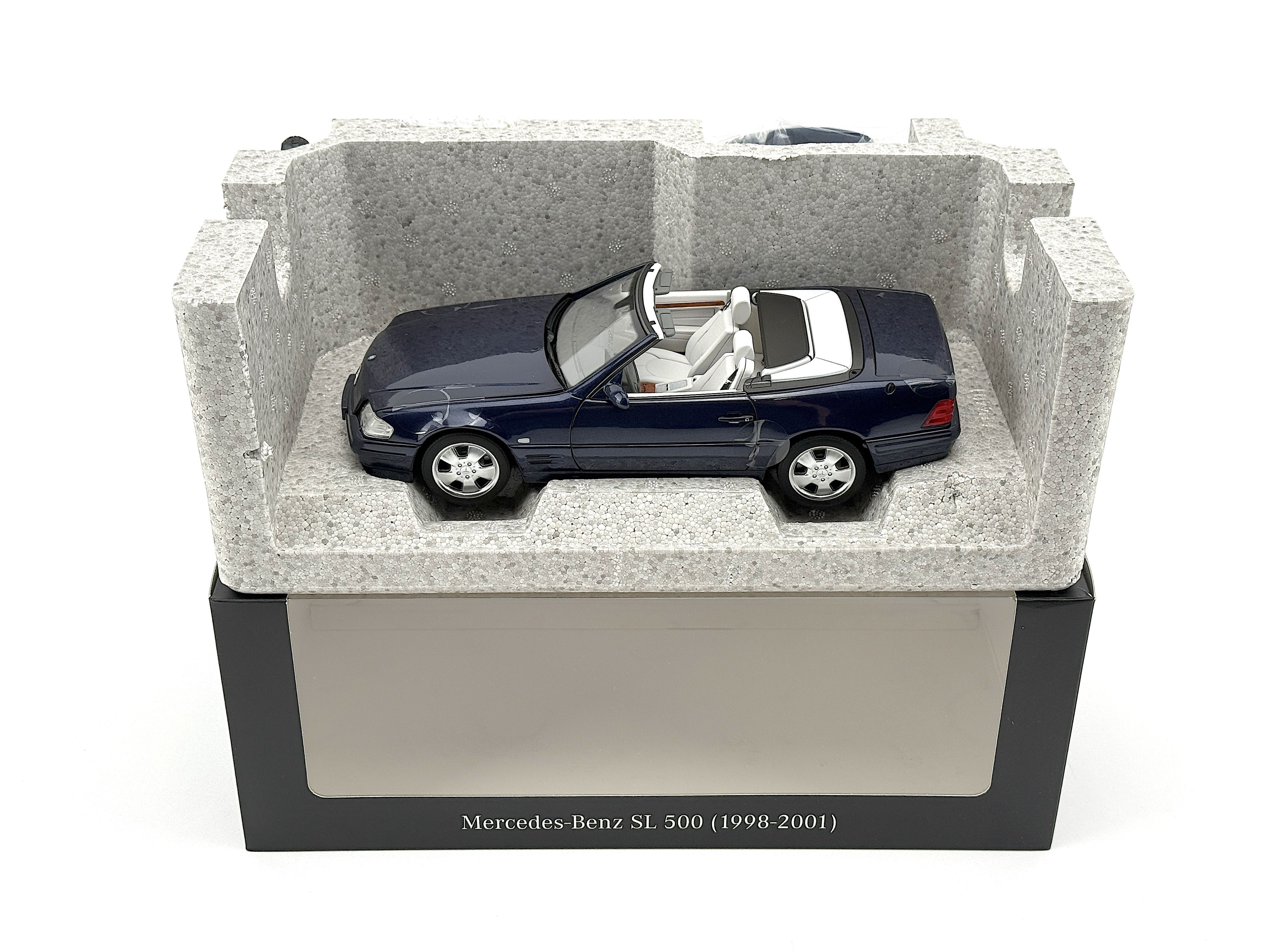 - Original brand new, never used, in original Mercedes package. Azuritblau/azure blue color. Model car size 1:18. Package include 1 Car, 1 hard top, 1 soft top, 1 fabric cover, 1 screwdriver.